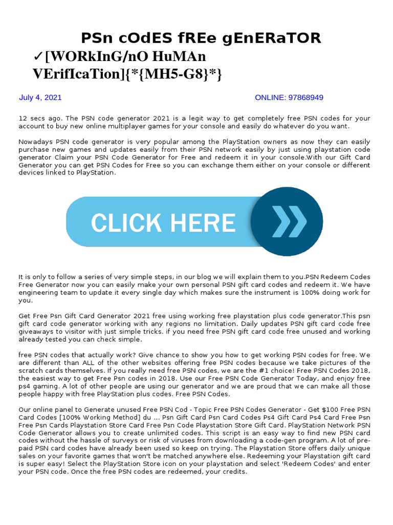 There are some legit ways by which you can actually get PSN Codes for free. Last Chance To Claim July 2020s Free PS Plus Games. 525 members redeemed this item Product details Additional Information.